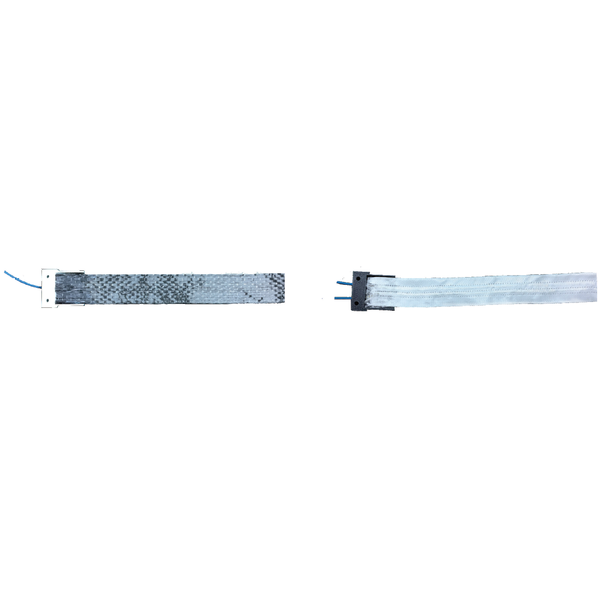 感測光纖的附著母體為碳纖維布、玻璃纖維布及芳綸布等材質(zhì)的織物條帶,通過縫合或編織方式與復(fù)合織物附著成一體。
