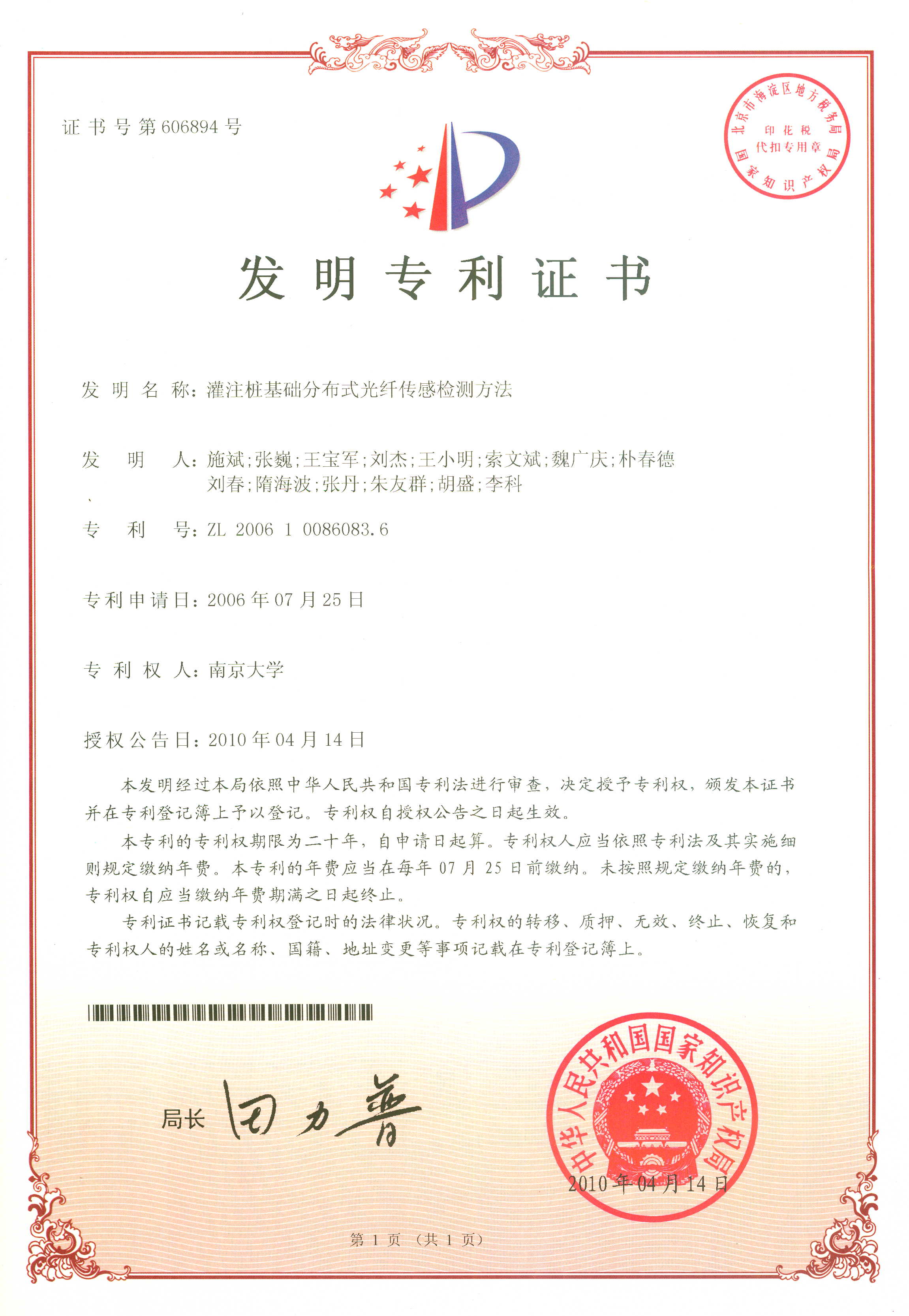 專利:灌注樁基礎分布式光纖傳感檢測方...